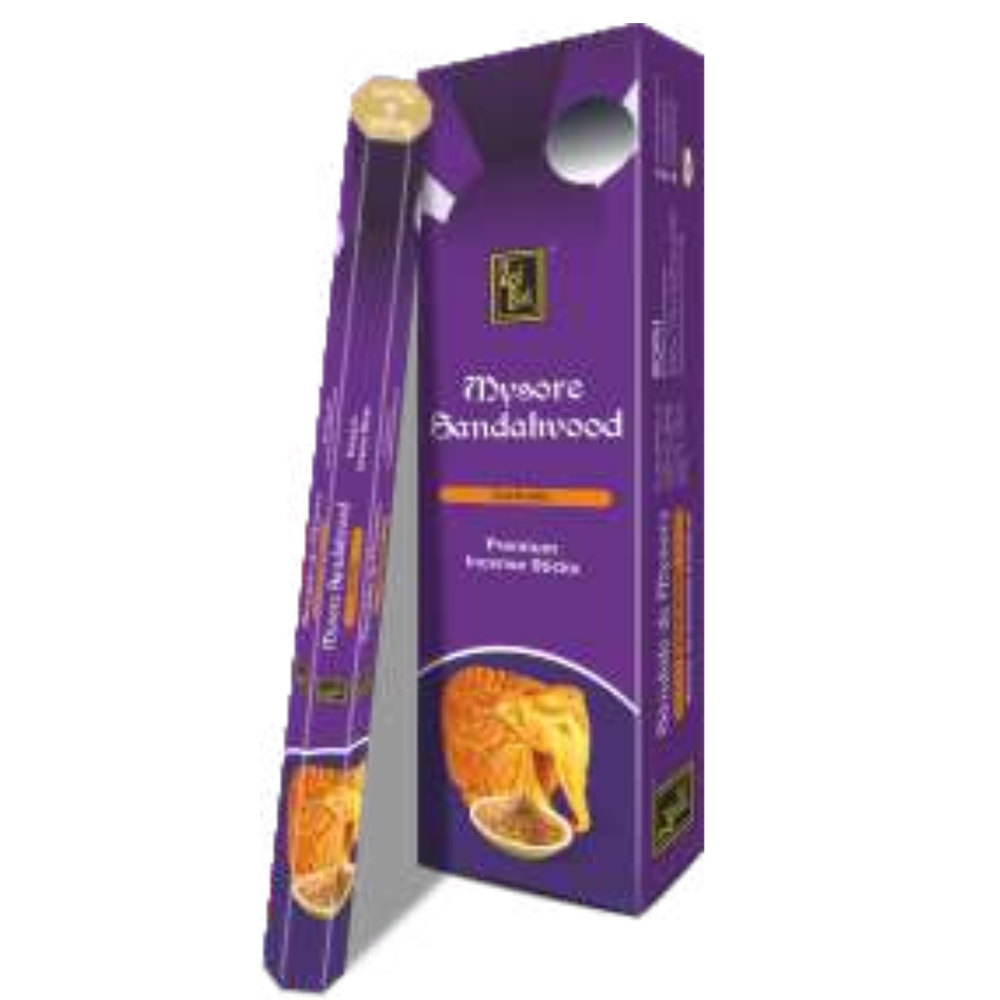 CAJA DE 6 TUBOS HEXAGONALES X 10 VARILLAS LARGAS - SANDALO MYSORE