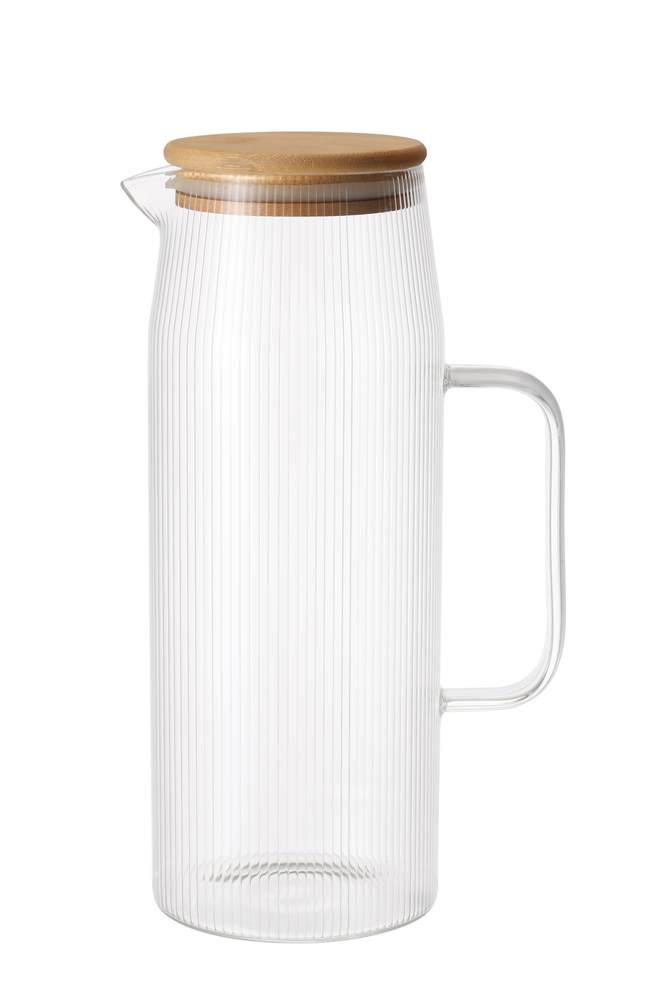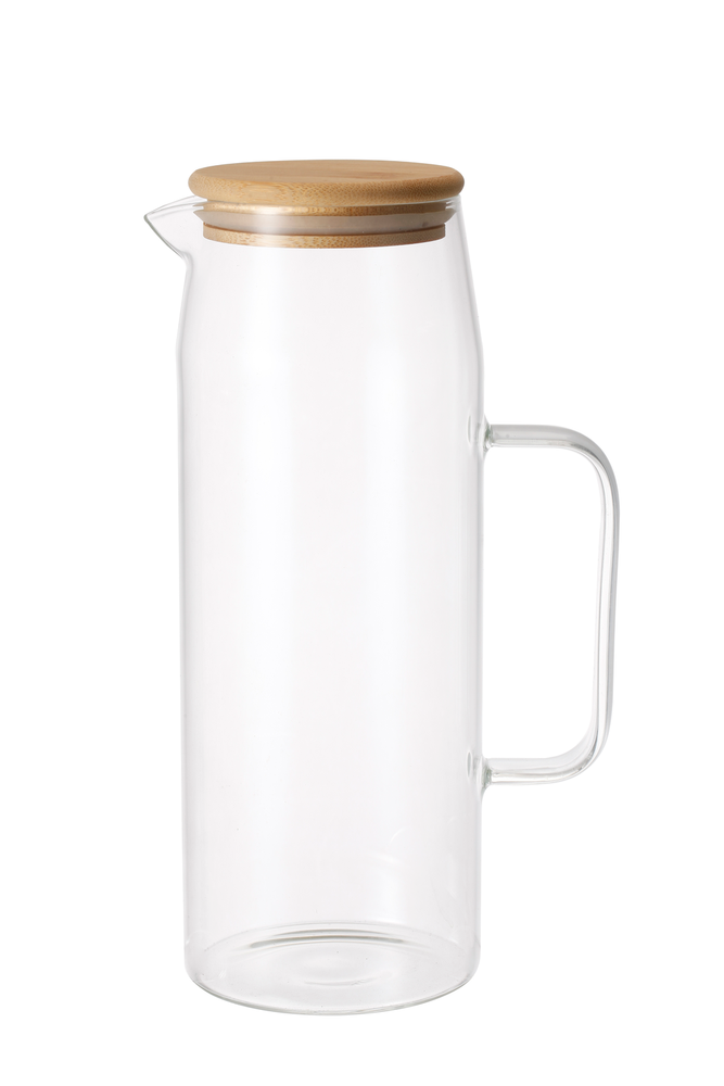 JARRA DE VIDRIO DE BOROSILICATO DE ALTA RESISTENCIA C/TAPA DE BAMBÚ